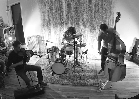 Nontraditional techniques and instrumental preparations are employed by the trio to produce a wide range of timbers. The musical scope of the ensemble stretches from heated silences to relentless drones, to frantic hyperactivity.